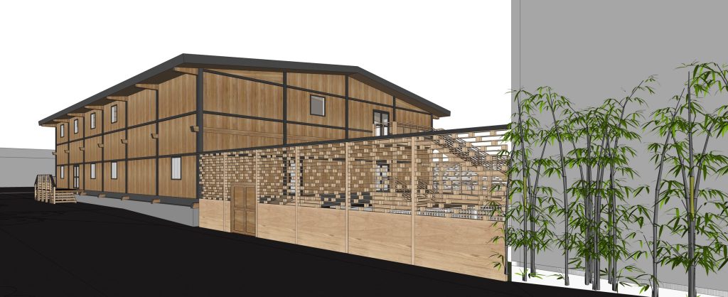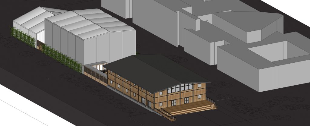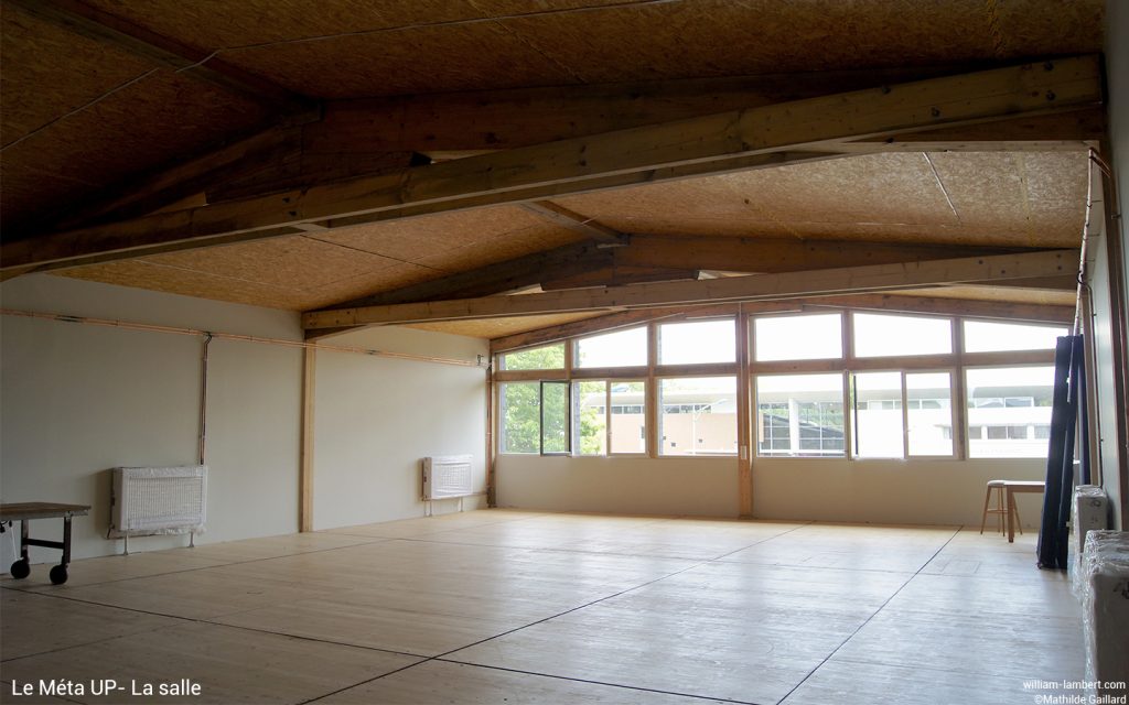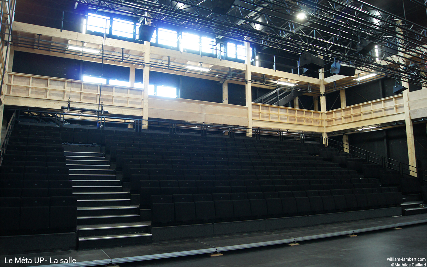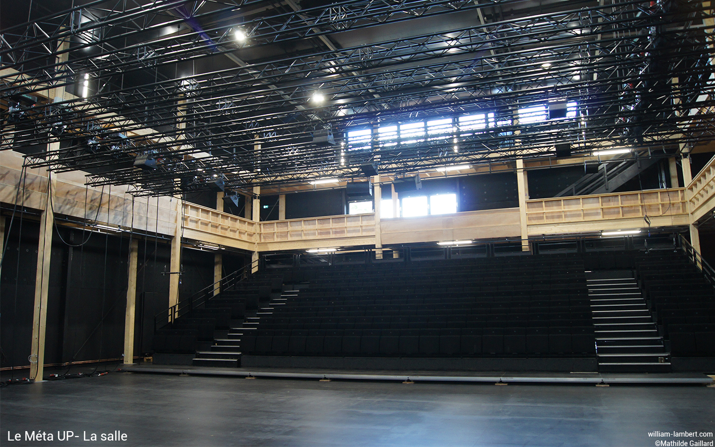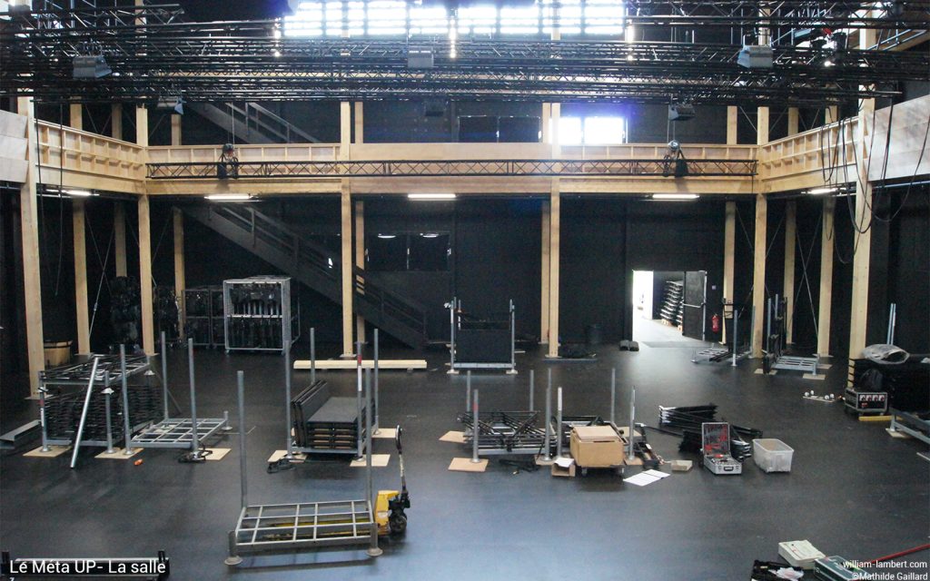 En tant que directeur technique, j’ai accompagné la construction du Méta UP (Centre Dramatique Poitiers Nouvelle Aquitaine). Historiquement, ce C.D.N n’avait pas de salle de spectacle. En partant de l’idée du ré-emploi, du pérenne-éphémère, du démontable-remontable, il a été confié au CDN la maitrise d’ouvrage de ce projet. Accompagné de l’agence Archidev et du cabinet de scénographie Kanju nous avons réalisé à partir de l’ancienne Baraka de Vidy-Lausanne (3 ème vie pour ce bâtiment tout en bois), du théâtre Ephémère d’Annemasse (2 ème vie pour ce bâtiment sans fondation) et d’une troisième structure servant d’atelier de stockage et d’entrée décors, un bâtiment de 2000m2 comprenant :